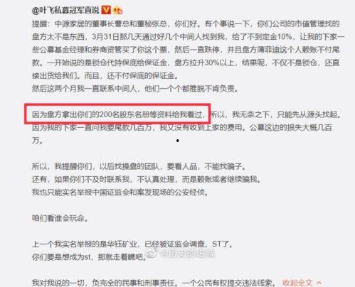 提起叶飞,可能很多人都会想起他曾经的辉煌。这位曾经的金融圈“卧底”,凭借敏锐的洞察力和敢于直言的精神,曾多次揭露金融圈的种种黑幕。他的爆料不仅让无数投资者受益,也让不少不法分子闻风丧胆。